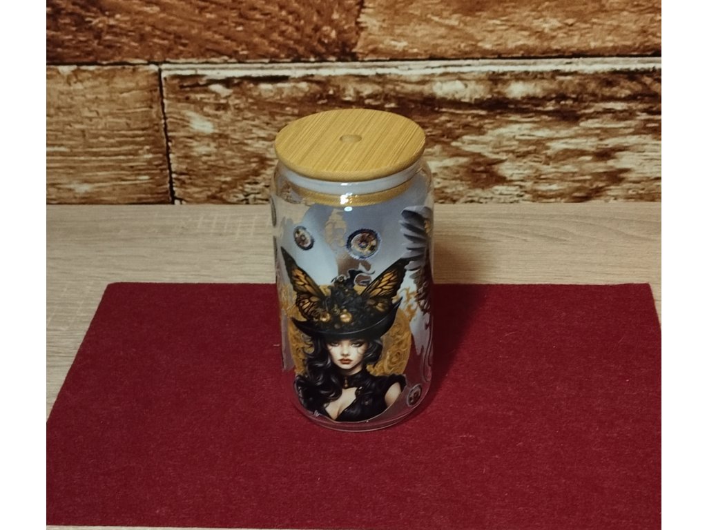 Součástí balení je sklenička, skleněné brčko, bambusové víčko a kartáček na čištění brčka.